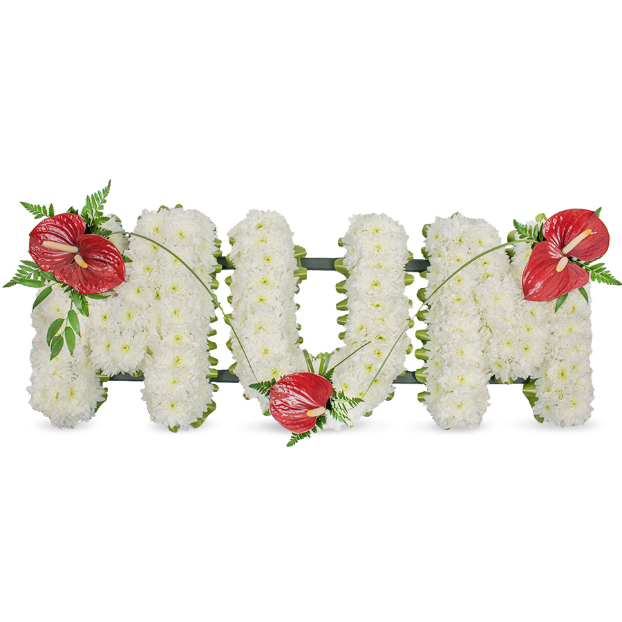 Our refined white chrysanthemum bouquet combines the purity of white chrysanthemums with vibrant anthuriums and lush greenery, creating a timeless and elegant floral tribute.